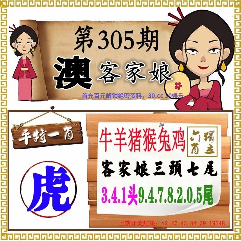 | 303期:客家娘心水 303期:【客家娘平特一肖】兔兔兔 303期:【客家娘必中六肖】虎猴牛鸡兔狗 |