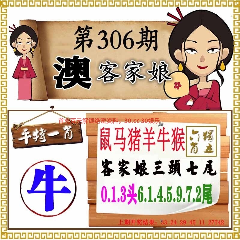 | 306期:客家娘心水 306期:【客家娘平特一肖】牛牛牛 306期:【客家娘必中六肖】鼠马猪羊牛猴 306期:【客家娘三头七尾】013头-6145972尾 |